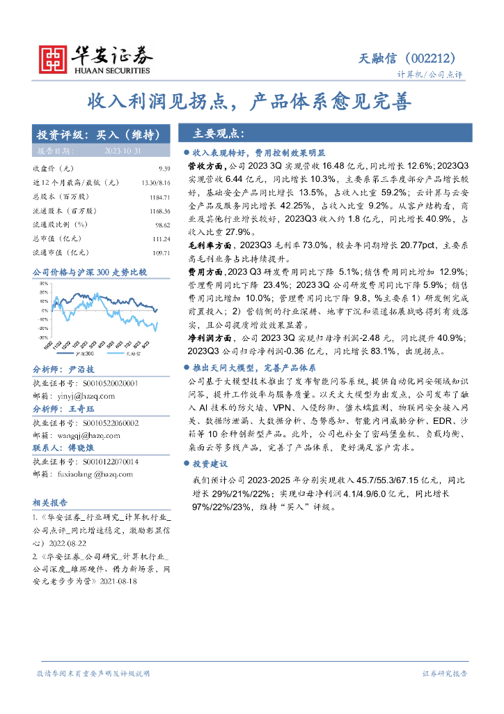 华安证券:天融信(002212)-收入利润见拐点,产品体系愈见完善.pdf
