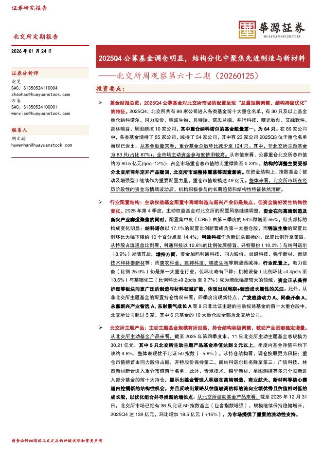 华源证券:北交所周观察第六十二期:2025Q4公募基金调仓明显,结构分化中聚焦先进制造与新材料-260125.pdf