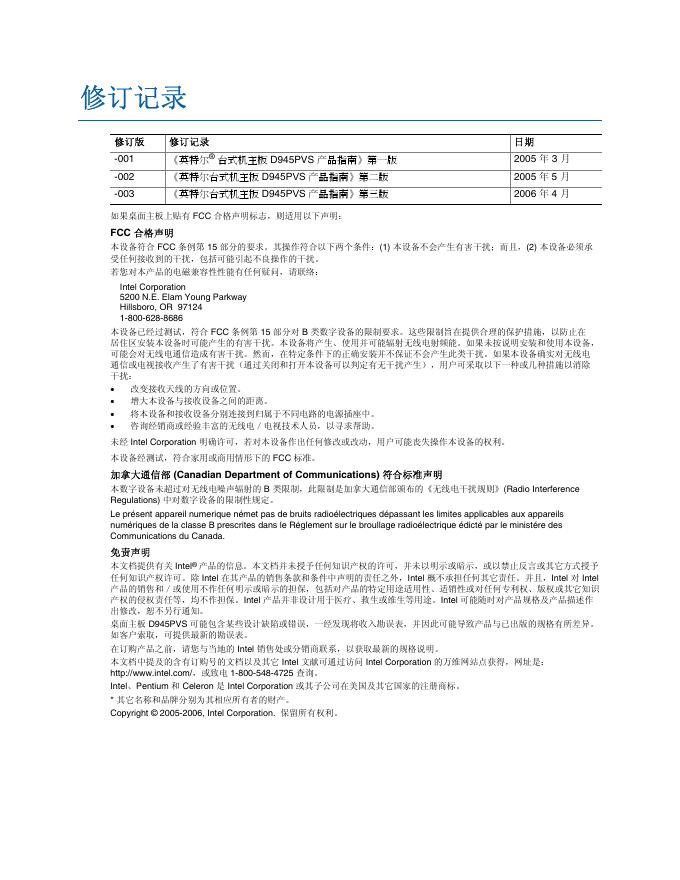 英特尔 台式机主板D945PVS 产品指南.pdf