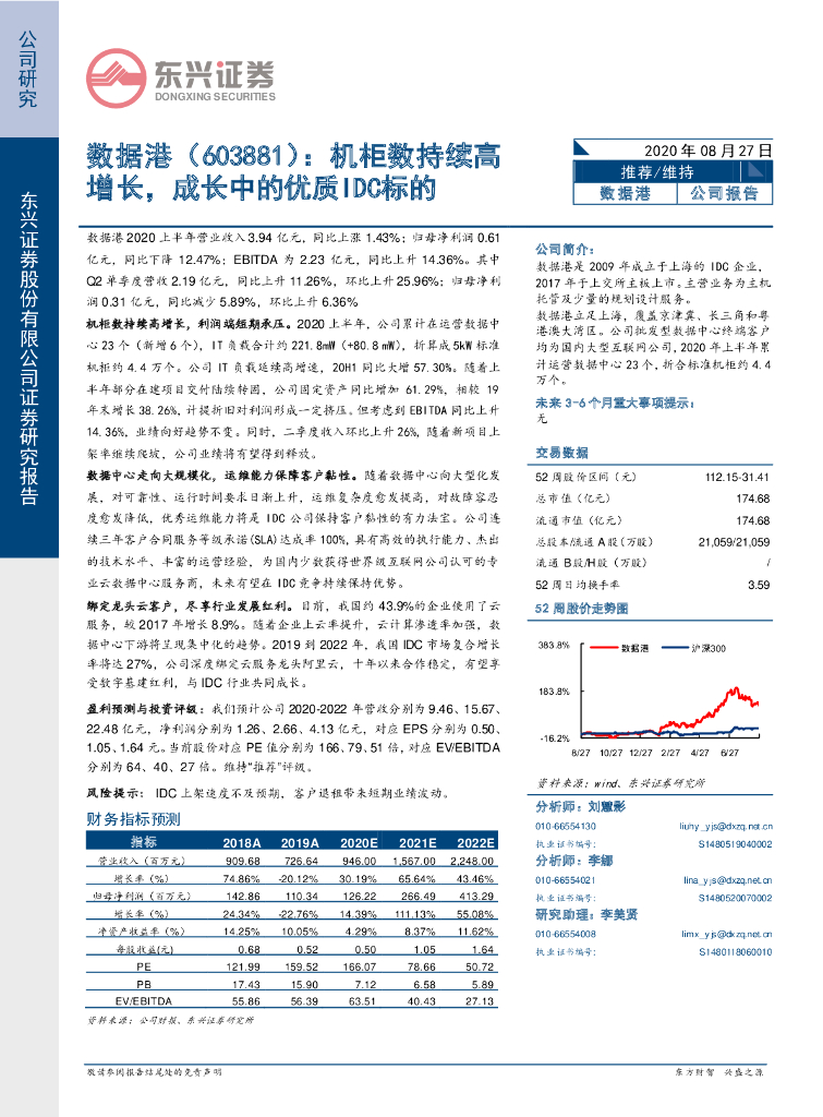 东兴证券:数据港(603881)-机柜数持续高增长,成长中的优质IDC标的.pdf