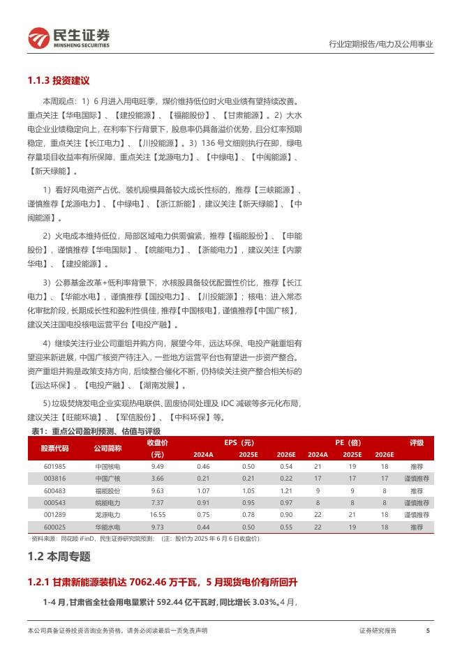 民生证券:电力及公用事业行业周报(25WK23):新型电力系统首批试点启动,甘肃新能源装机突破.pdf