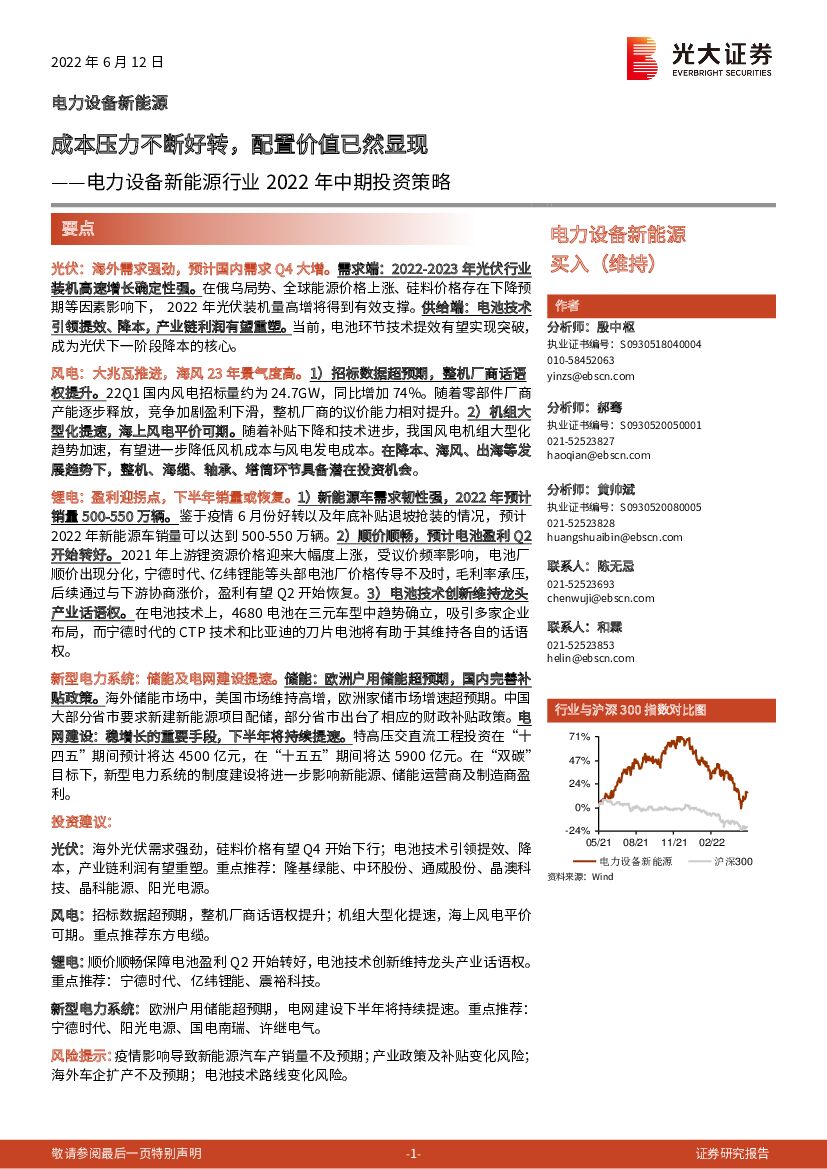光大证券:电力设备新能源行业2022年中期投资策略:成本压力不断好转,配置价值已然显现.pdf