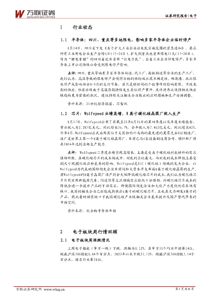 万联证券:电子行业周观点:2022世界半导体大会顺利召开,关注SiC产业链投资机遇.pdf