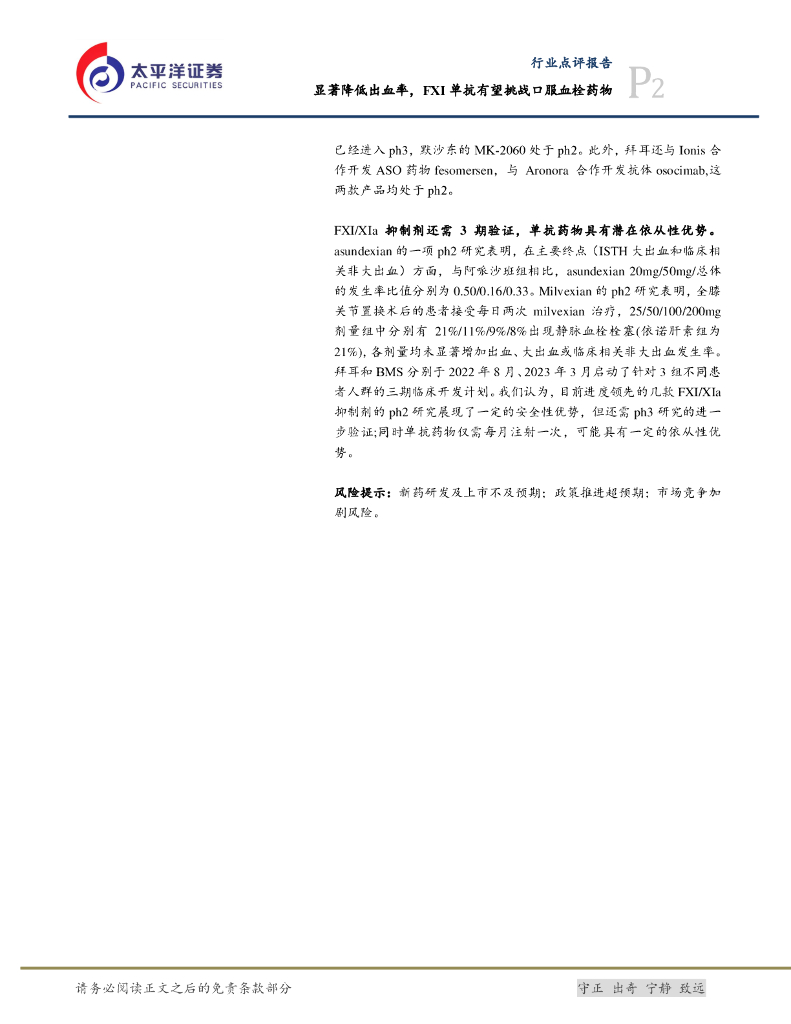 太平洋证券:医药生物:显著降低出血率,FXI单抗有望挑战口服血栓药物.pdf