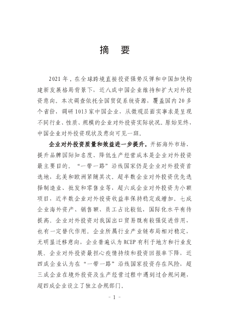 中国贸促会研究院:中国企业对外投资现状及意向调查报告(2021年版).pdf