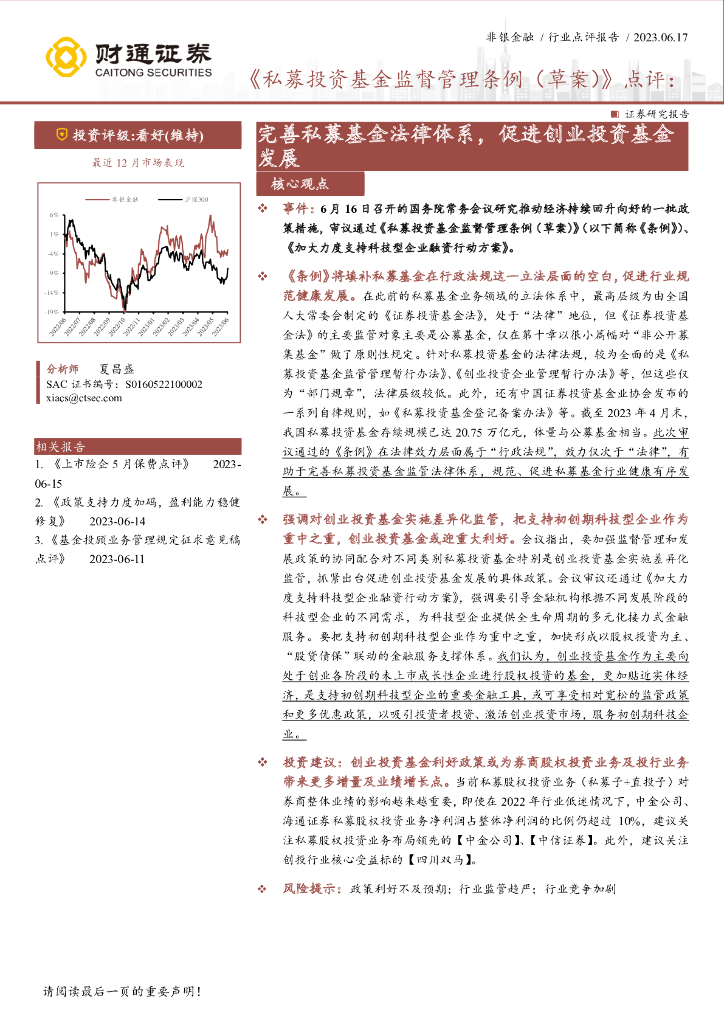 财通证券:《私募投资基金监督管理条例(草案)》点评:完善私募基金法律体系,促进创业投资基金发展.pdf