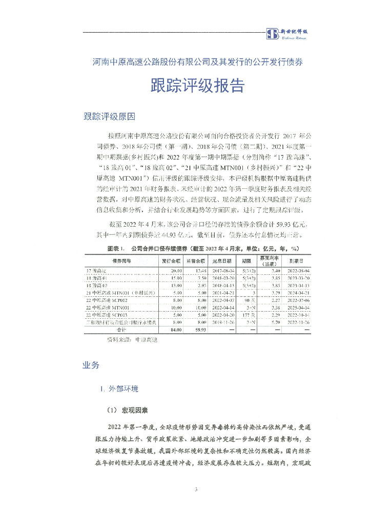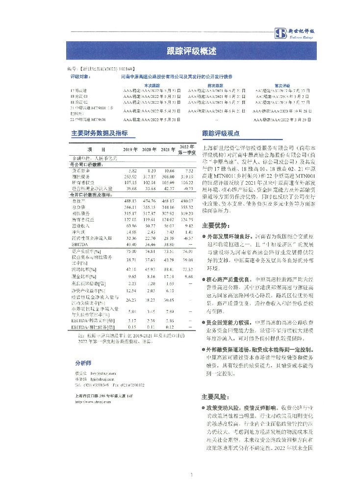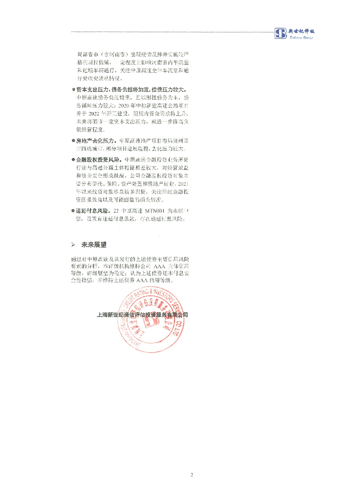 新世纪:河南中原高速公路股份有限公司及其发行的公开发行债券跟踪评级报告.pdf