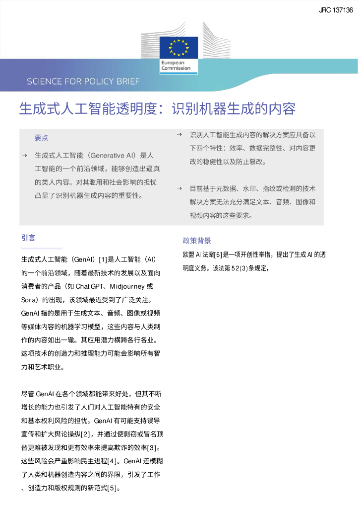 欧盟委员会:2024生成式人工智能透明度:识别机器生成的内容报告.pdf