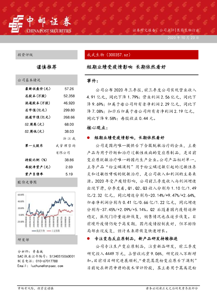中邮证券:我武生物(300357)-短期业绩受疫情影响 长期依然看好.pdf