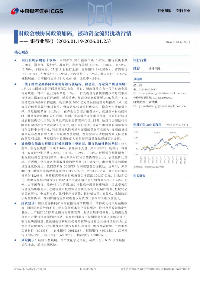 中国银河:银行业周报:财政金融协同政策加码,被动资金流出扰动行情.pdf