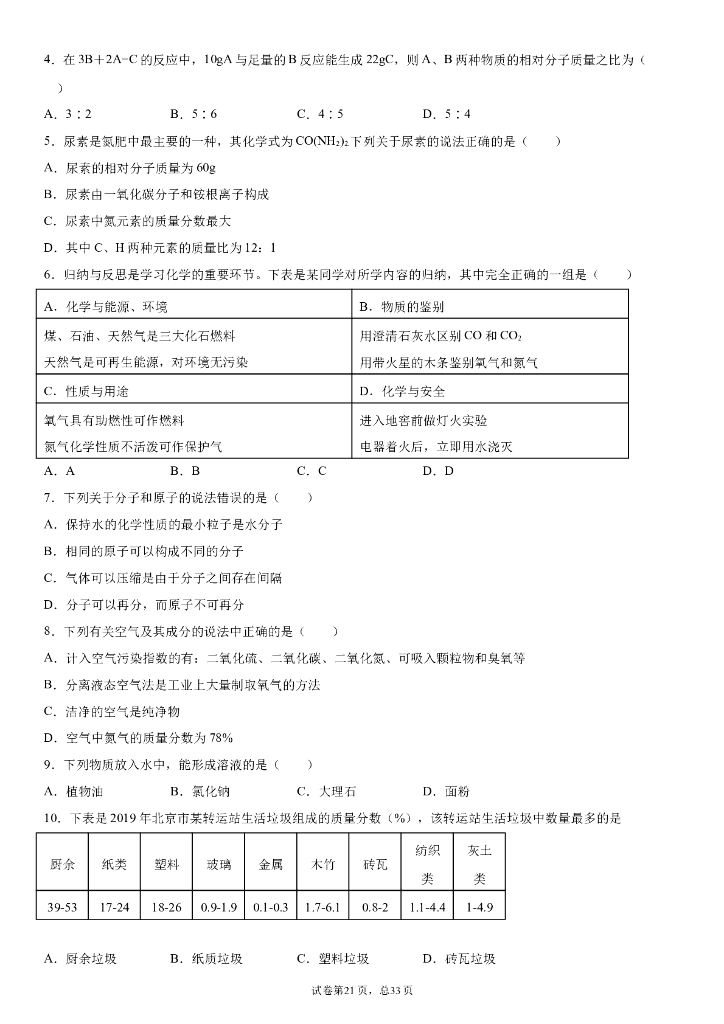 初中化学期末测试卷(1-9单元).doc