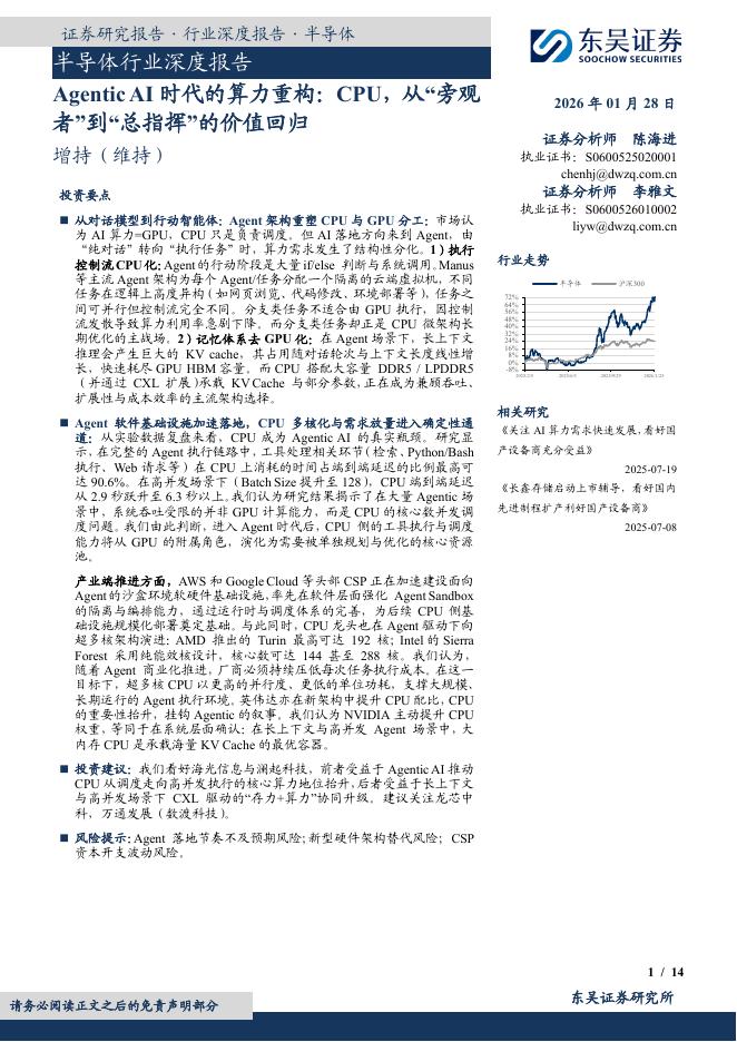 东吴证券:半导体行业深度报告:AgenticAI时代的算力重构:CPU,从“旁观者”到“总指挥”的价值回归.pdf