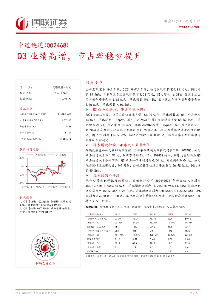 国联证券:申通快递(002468)-Q3业绩高增,市占率稳步提升.pdf