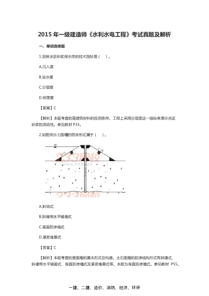 2015年一级建造师水利水电实务真题(附答案).pdf