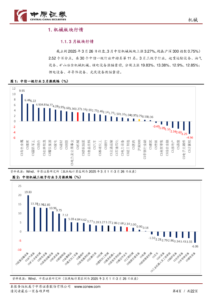 中原证券:机械行业月报:挖掘机国内销量高增长,人形机器人产品密集发布.pdf