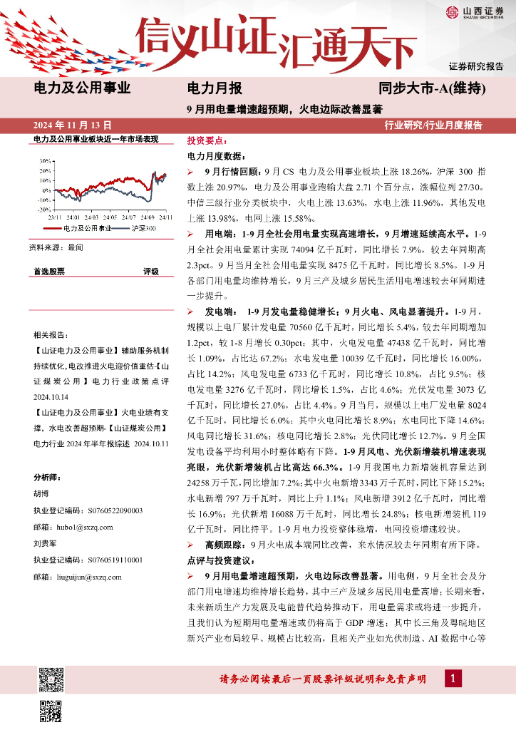 山西证券:电力月报:9月用电量增速超预期,火电边际改善显著.pdf