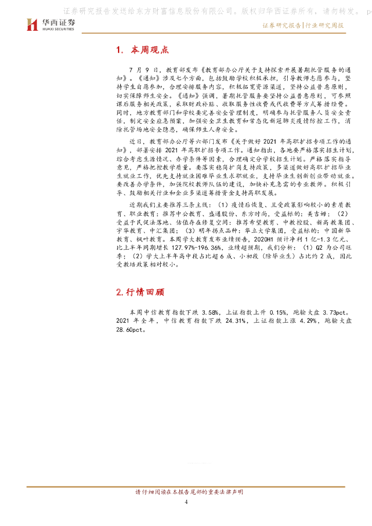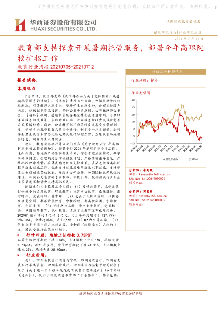 华西证券:教育行业周报:教育部支持探索开展暑期托管服务,部署今年高职院校扩招工作.pdf