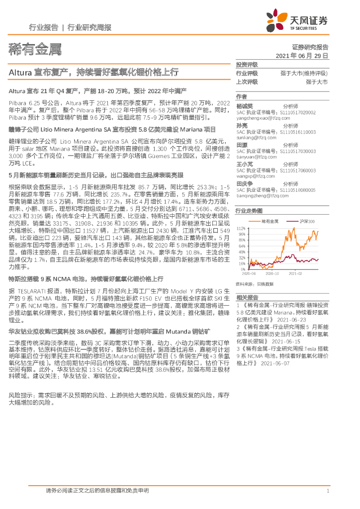 天风证券:稀有金属行业研究周报:Altura宣布复产,持续看好氢氧化锂价格上行.pdf