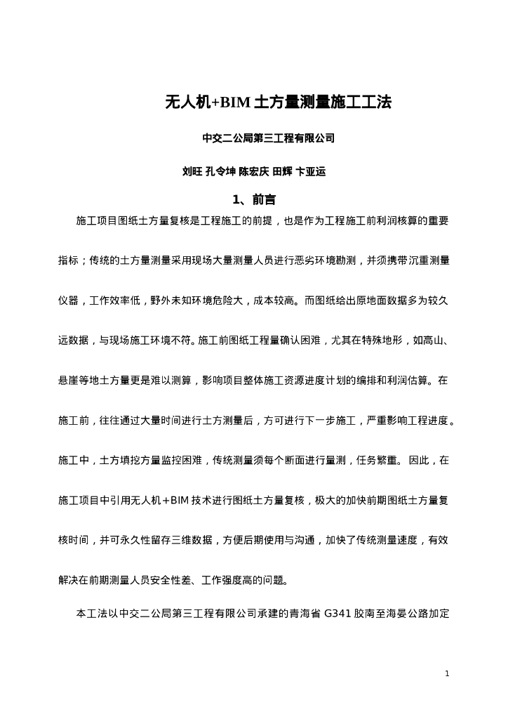 QHGF-2022011 无人机+BIM土方量测量施工工法.doc