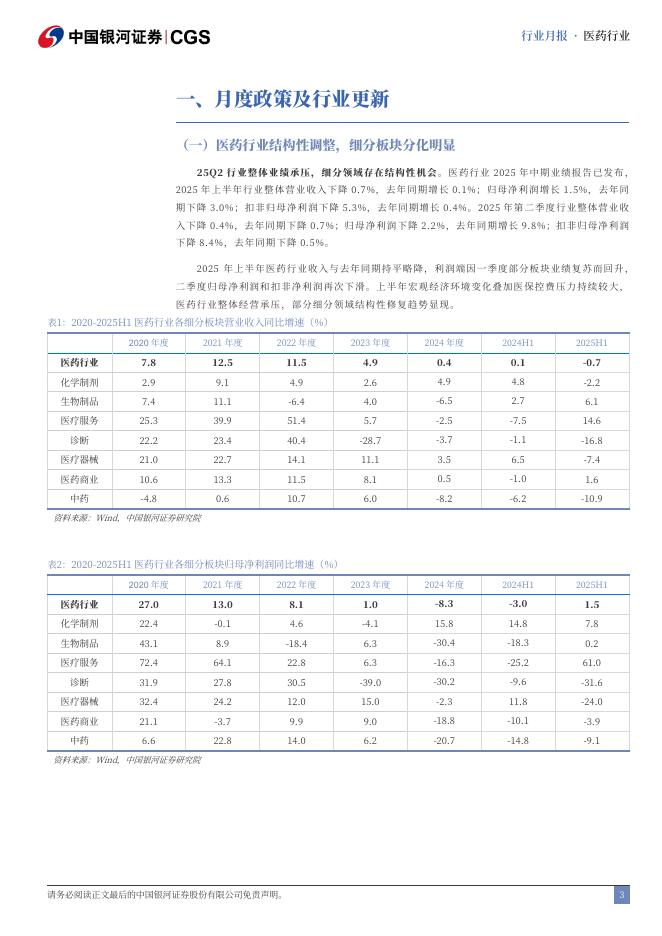 中国银河:医药行业2025年中报总结、月报25/08:医药行业结构性分化,创新药龙头率先盈利.pdf