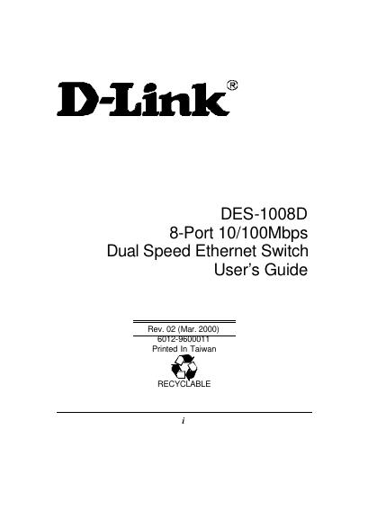 D-Link DES-1008D 8-Port 10/100Mbps Dual Speed Ethernet Switch User’s Guide.pdf