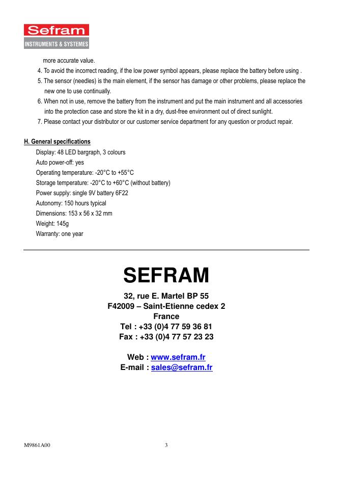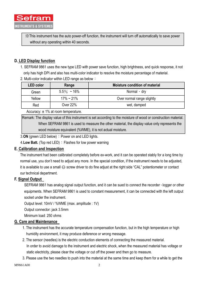 SEFRAM 9861 LED Bargraph Type Moisture Meter Instruction Manual.pdf