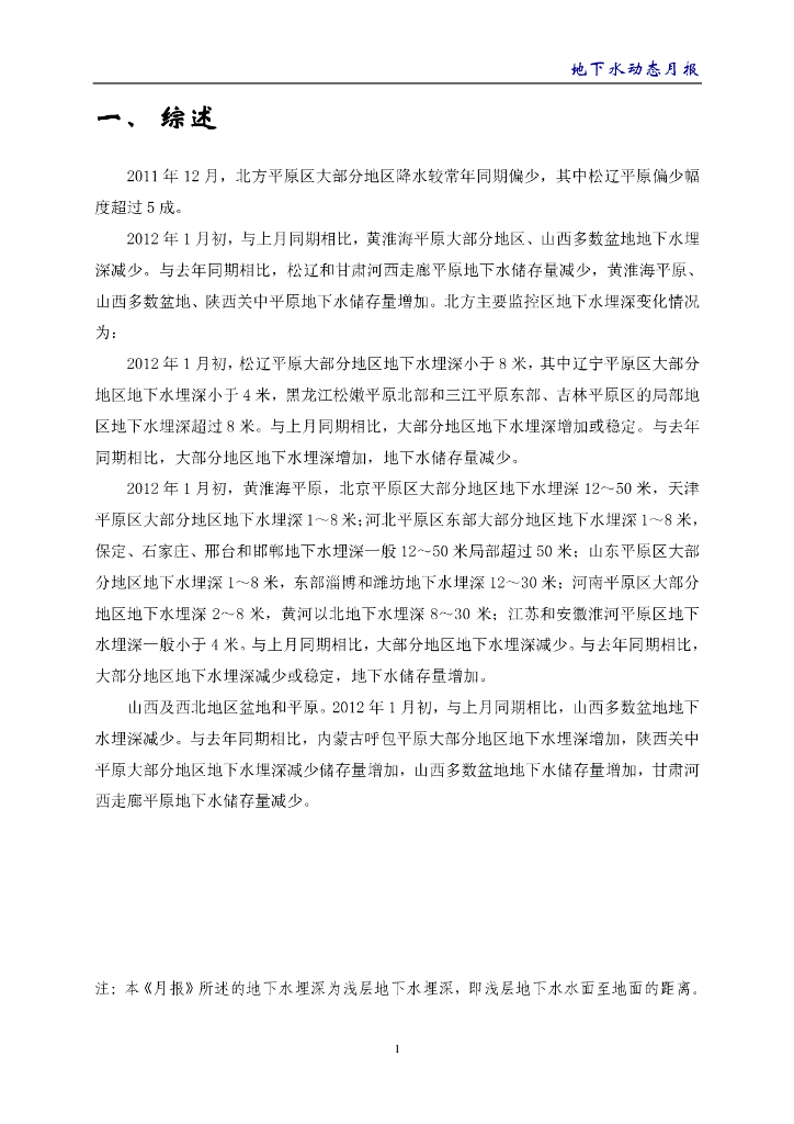 水利部:《地下水动态月报》2012年1月.pdf