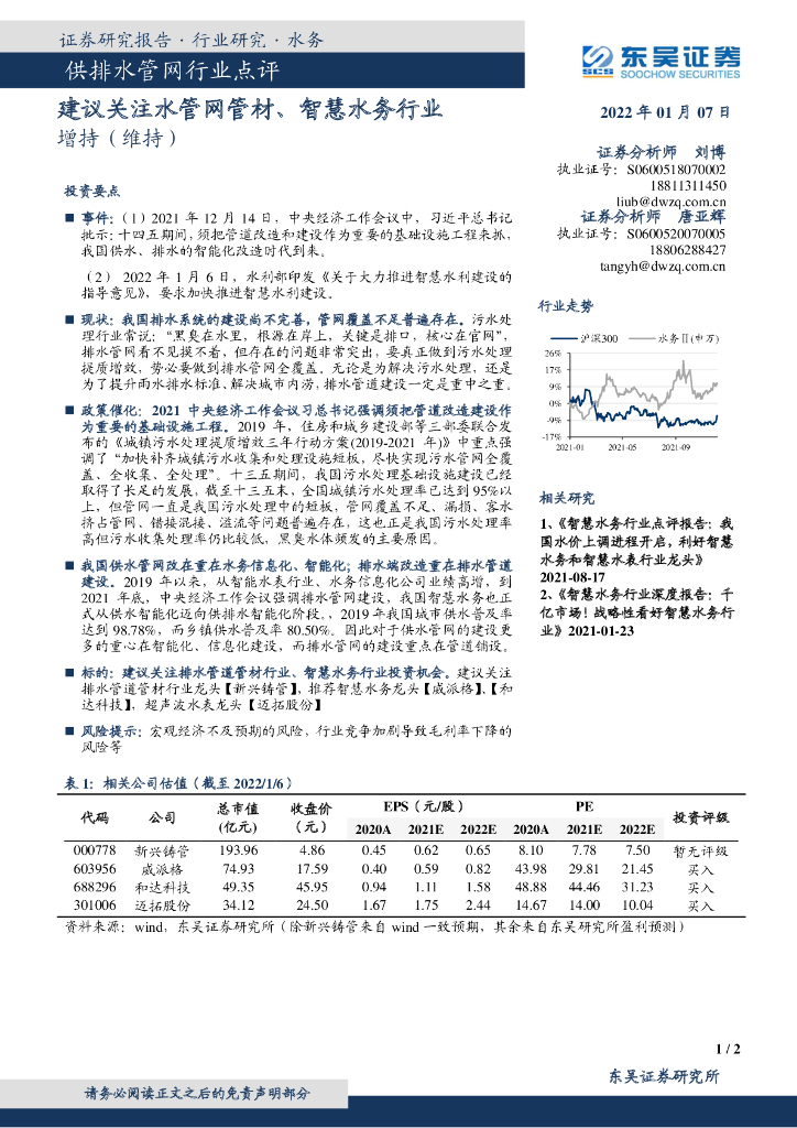 东吴证券:供排水管网行业点评:建议关注水管网管材、智慧水务行业.pdf