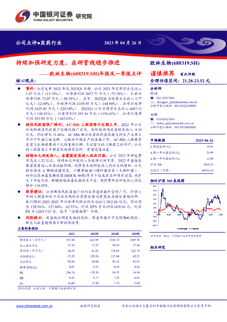 中国银河:欧林生物(688319)-年报及一季报点评:持续加强研发力度,在研管线稳步推进.pdf