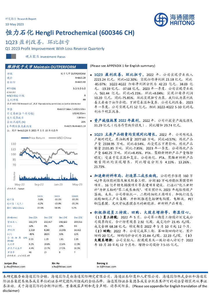海通国际:恒力石化(600346)-1Q23盈利改善,环比扭亏.pdf