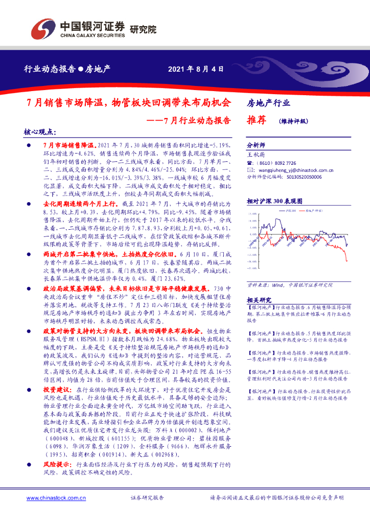 中国银河:房地产行业7月行业动态报告:7月销售市场降温,物管板块回调带来布局机会.pdf
