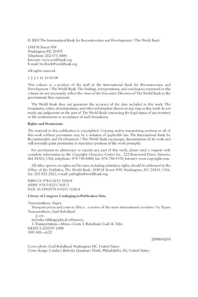 世界银行:发展方向报告-非洲的运输价格和成本:国际走廊回顾(英文版).pdf