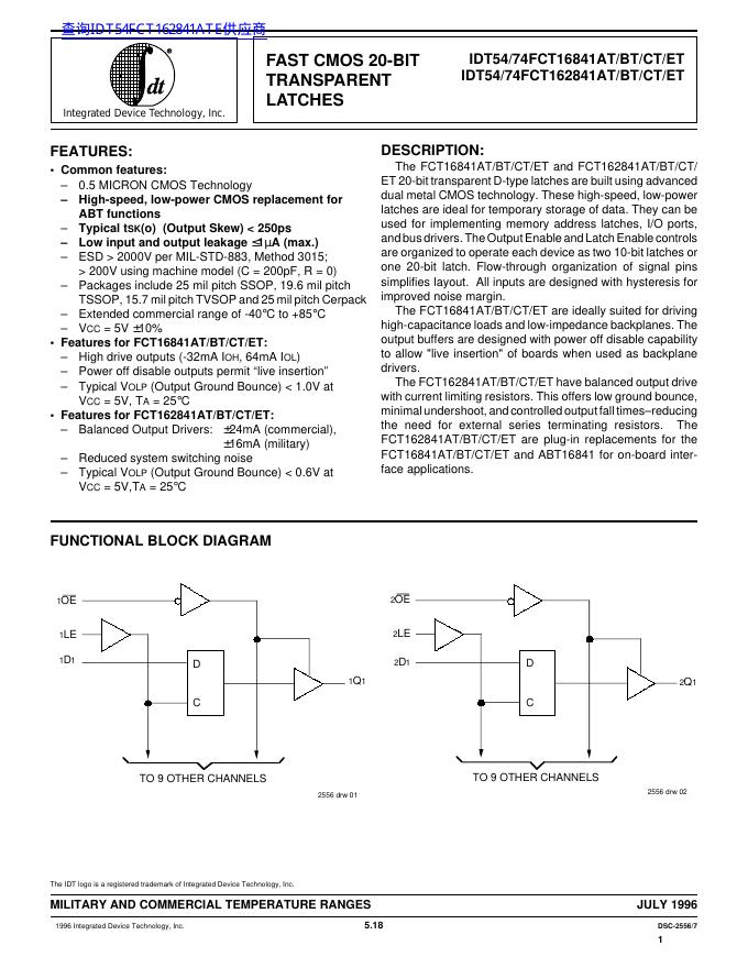 IDT IDT54/74FCT16841AT/BT/CT/ET, IDT54/74FCT162841AT/BT/CT/ET 数据手册.pdf