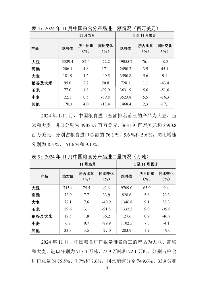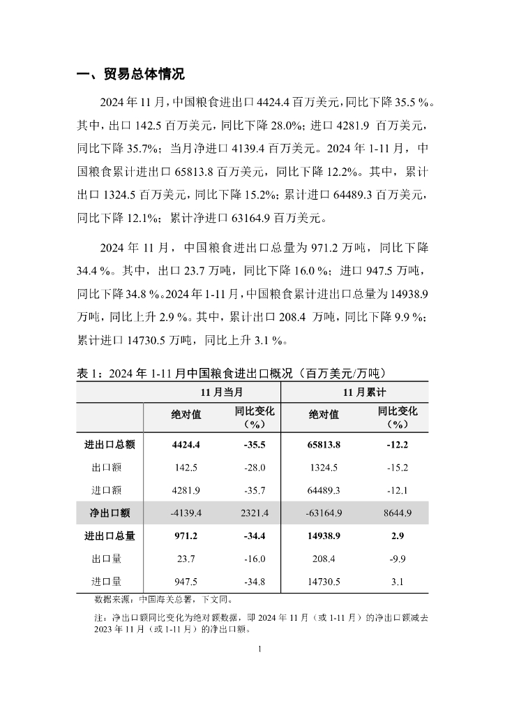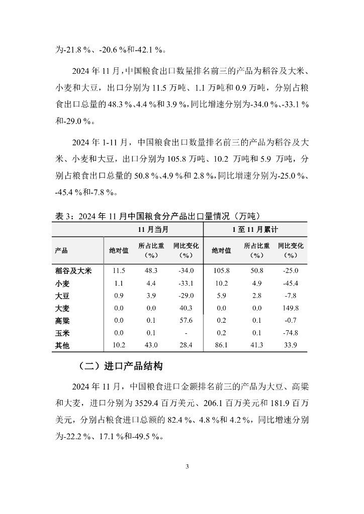 对外经济贸易大学:中国粮食贸易月度监测报告(2024年1-11月).pdf