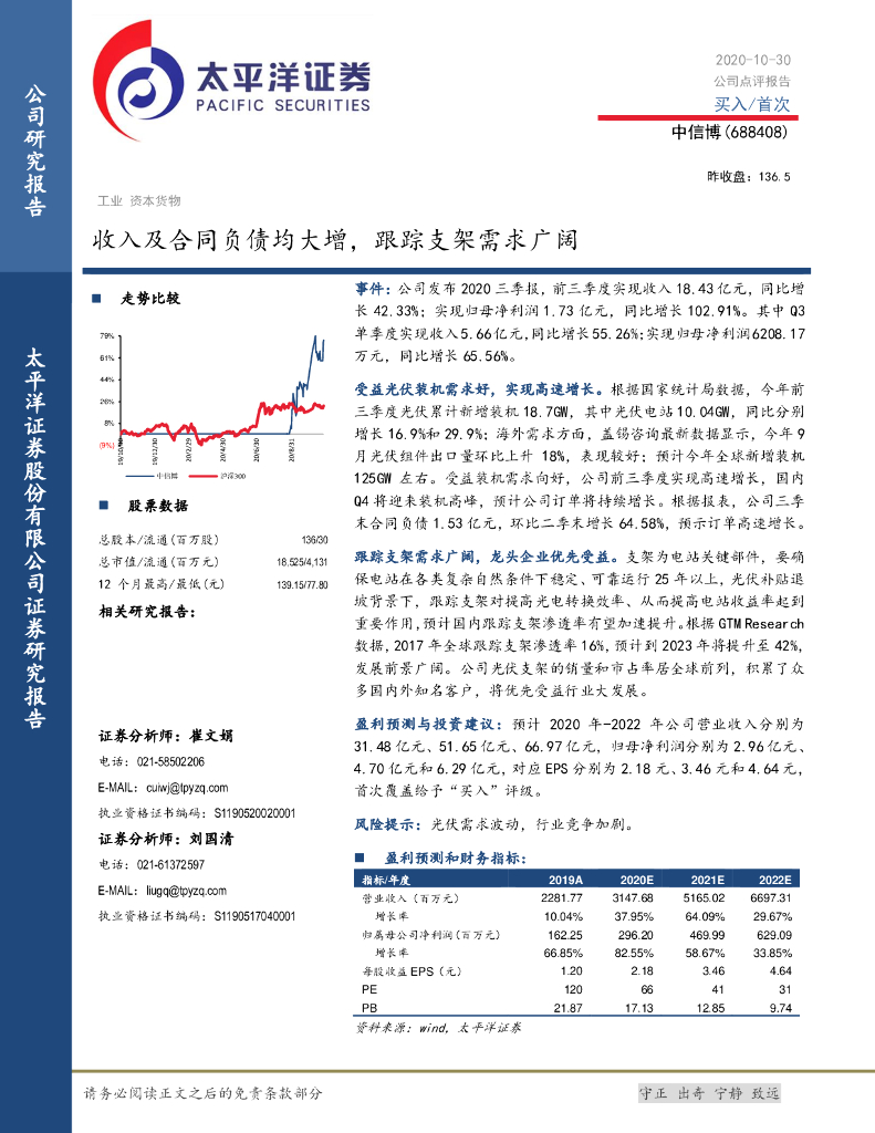 太平洋证券:中信博(688408)-收入及合同负债均大增,跟踪支架需求广阔.pdf