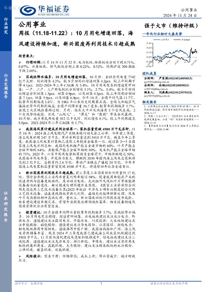 华福证券:公用事业行业周报:10月用电增速回落,海风建设持续加速,新兴固废再利用技术日趋成熟.pdf