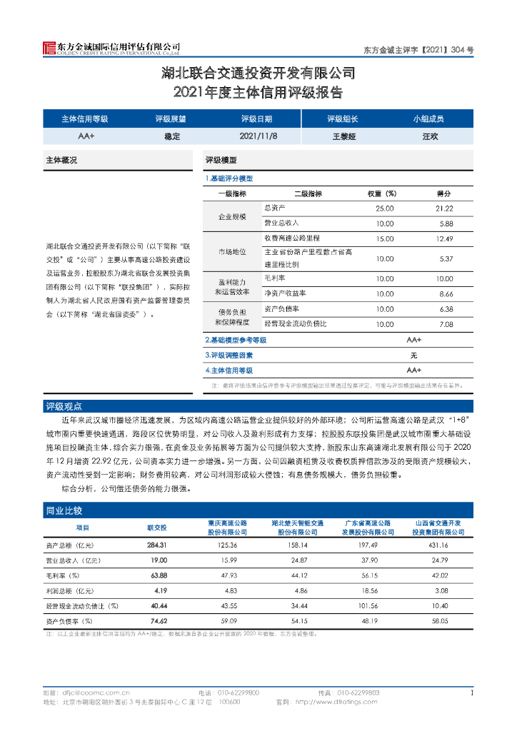 东方金诚:湖北联合交通投资开发有限公司2021年度主体信用评级报告.pdf