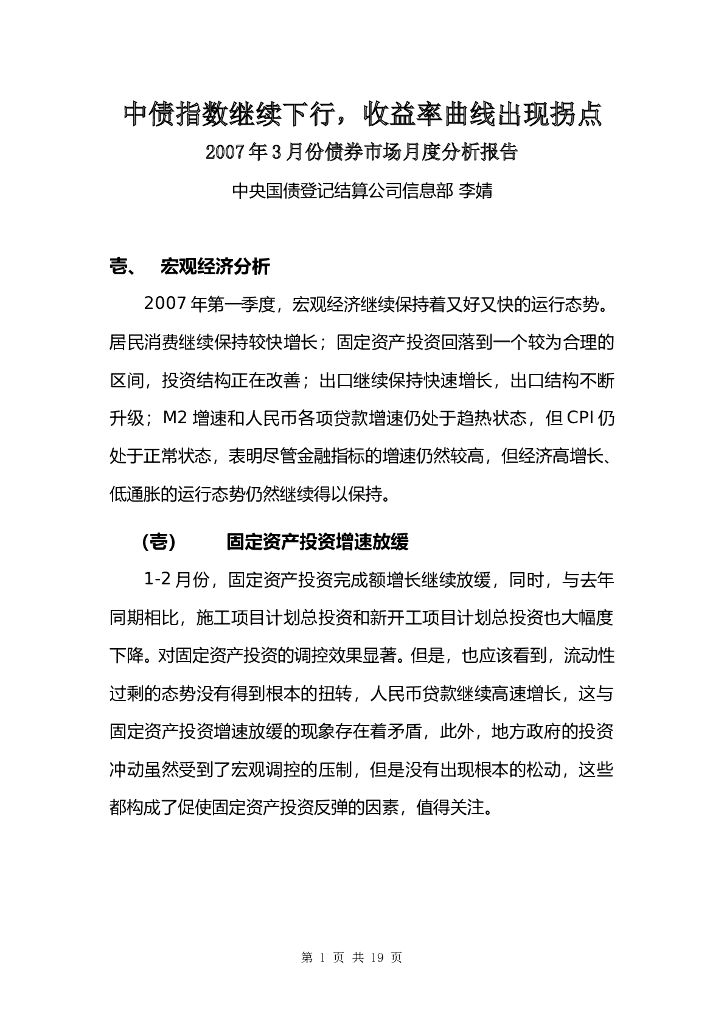 中债研发中心:2007年3月份债券市场月度分析报告.doc