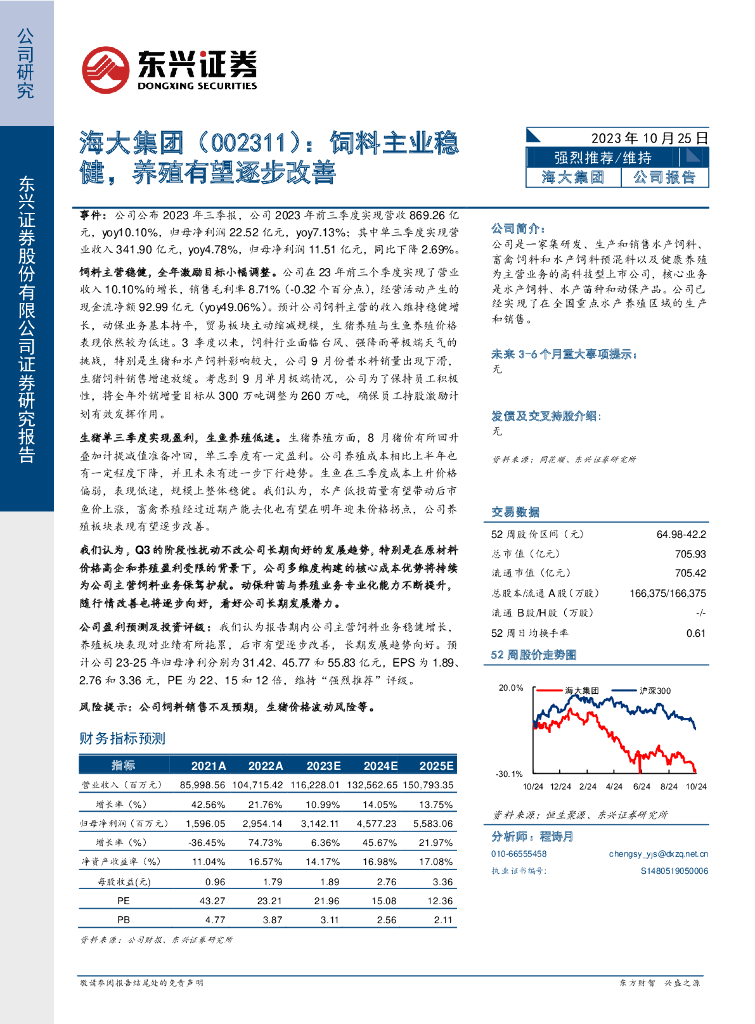 东兴证券:海大集团(002311)-饲料主业稳健,养殖有望逐步改善.pdf