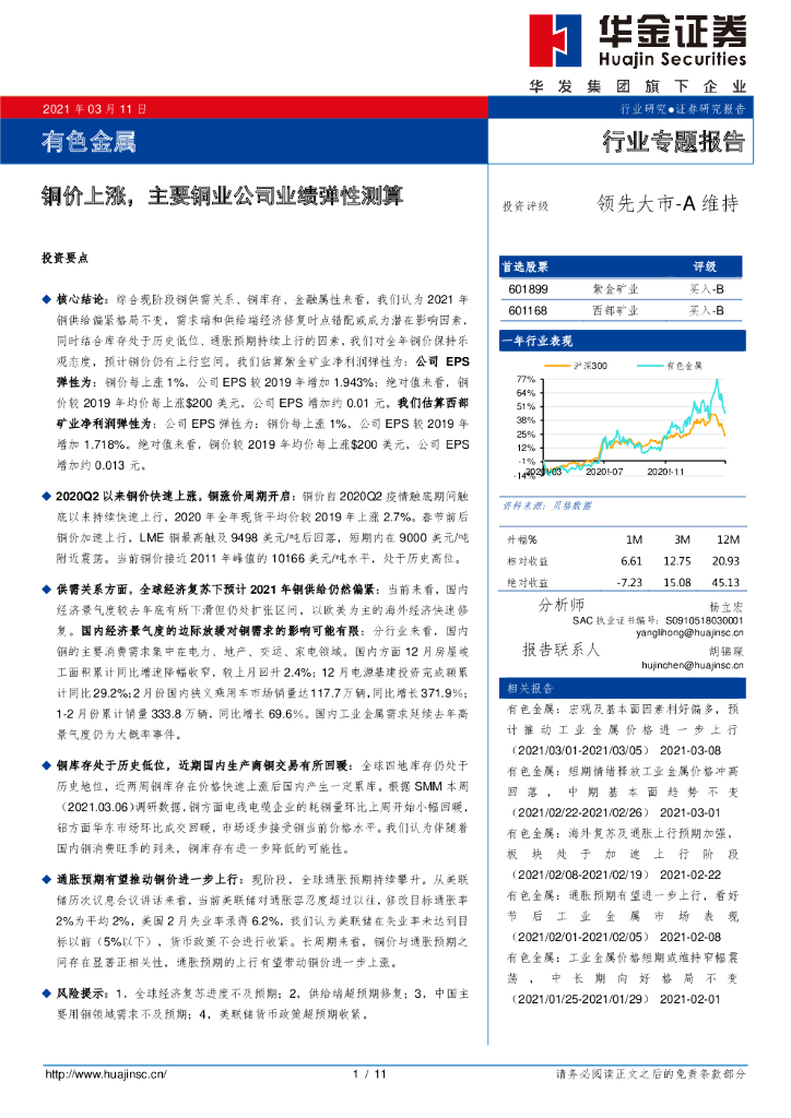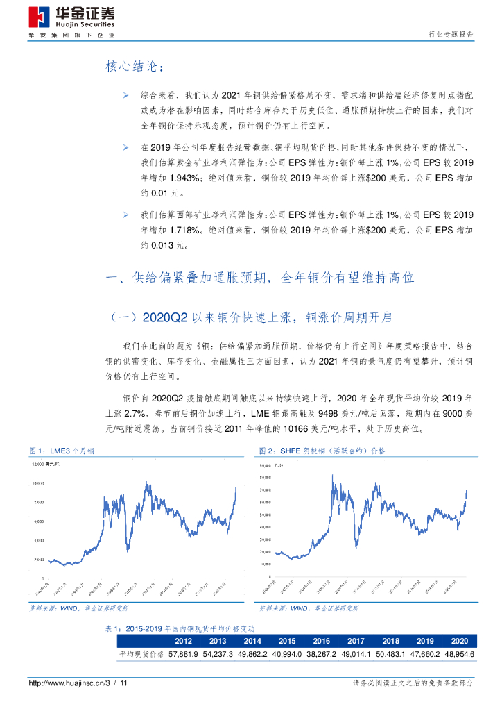 华金证券:有色金属行业专题报告:铜价上涨,主要铜业公司业绩弹性测算.pdf