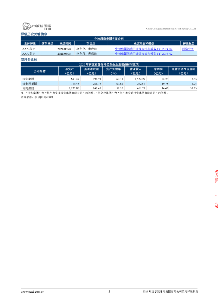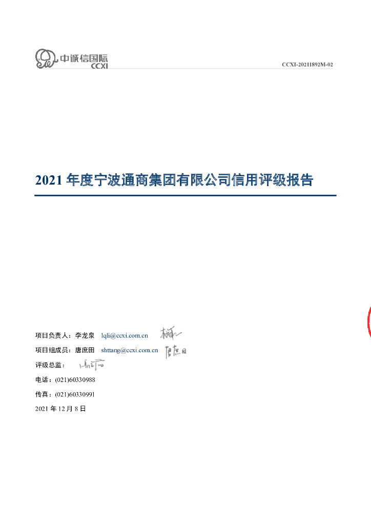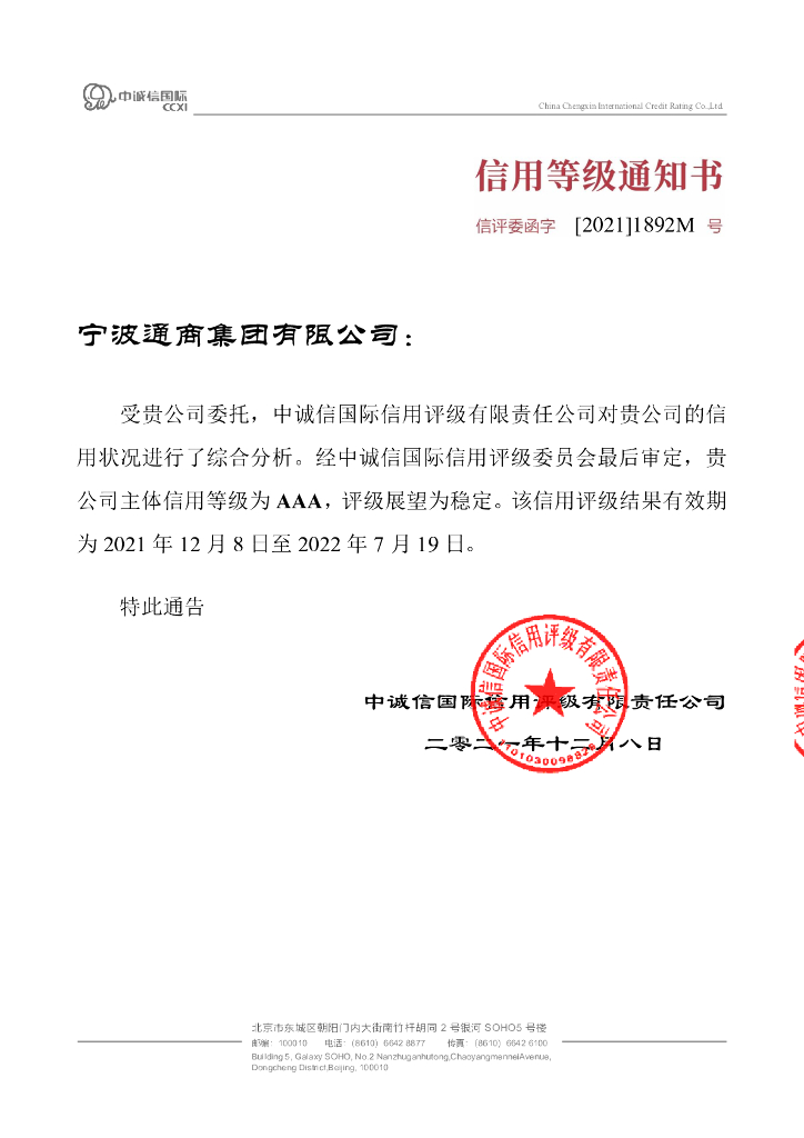 中诚信:宁波通商集团有限公司2021年度主体信用评级报告.pdf