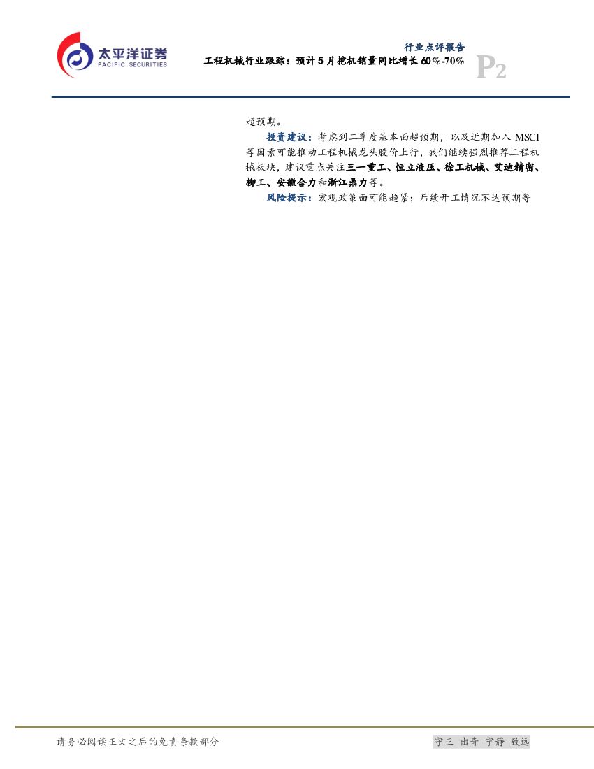 太平洋证券:工程机械行业跟踪:预计5月挖机销量同比增长60%-70%.pdf