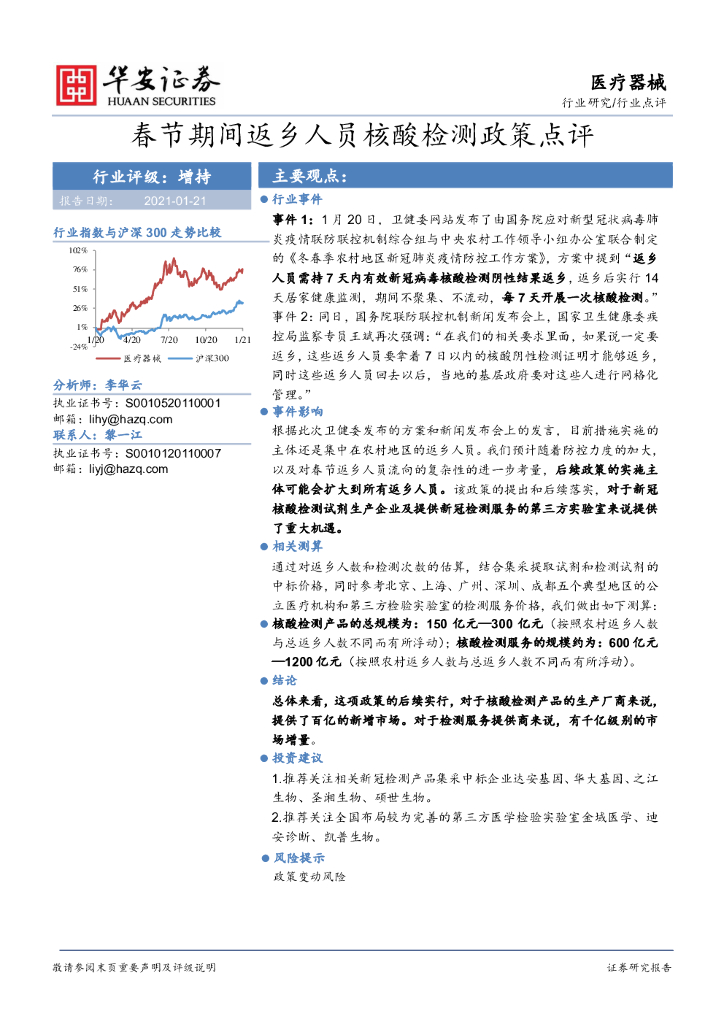 华安证券:医疗器械行业点评:春节期间返乡人员核酸检测政策点评.pdf