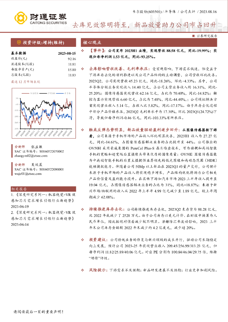 财通证券:韦尔股份(603501)-去库见效黎明将至,新品放量助力公司市占回升.pdf