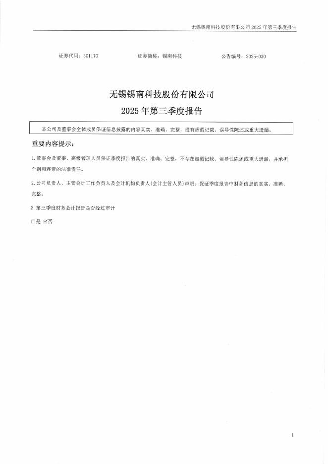 301170-锡南科技:2025年三季度报告.pdf