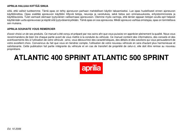 aprilia 8181097 ATLANTIC 400 SPRINT- ATLANTIC 500 SPRINT SF-F MY 2006 使用手册.pdf