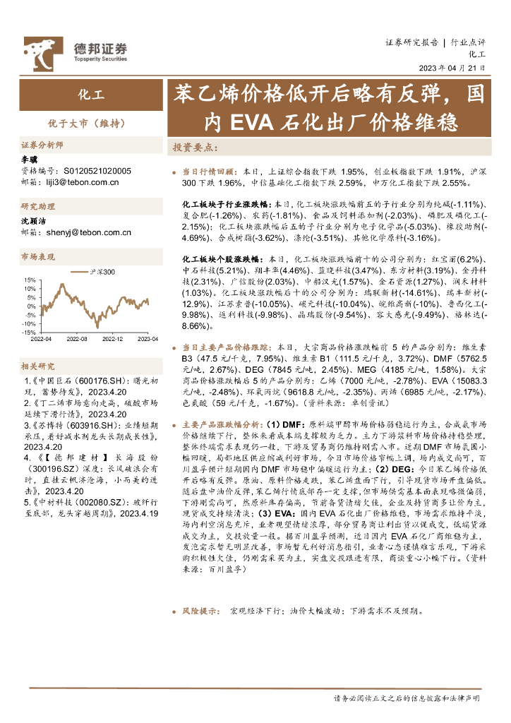 德邦证券:化工:苯乙烯价格低开后略有反弹,国内EVA石化出厂价格维稳.pdf