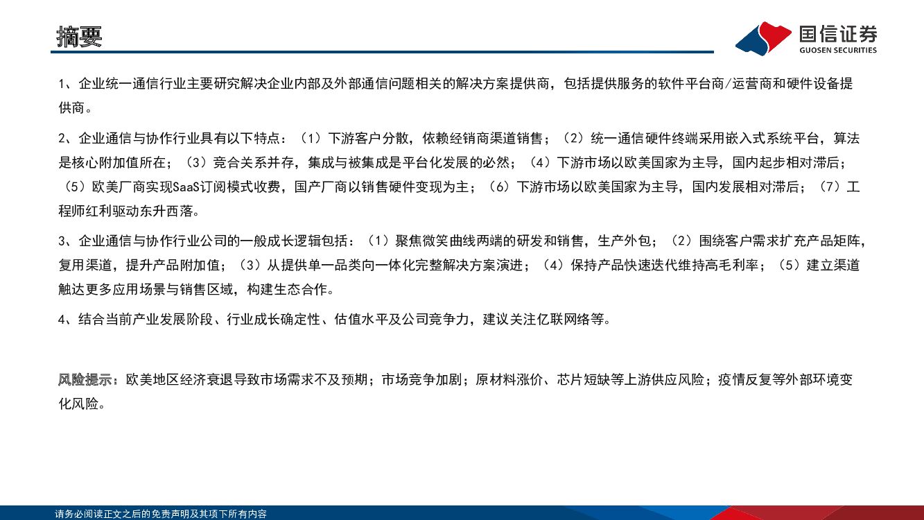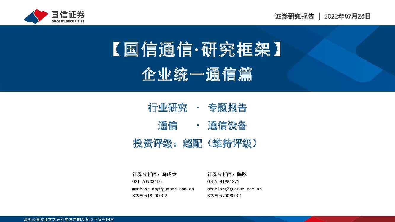 国信证券:【国信通信·研究框架】企业统一通信篇.pdf