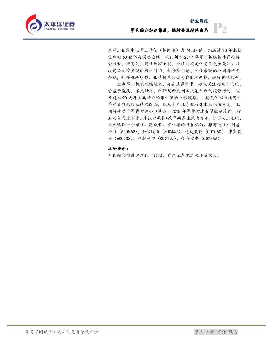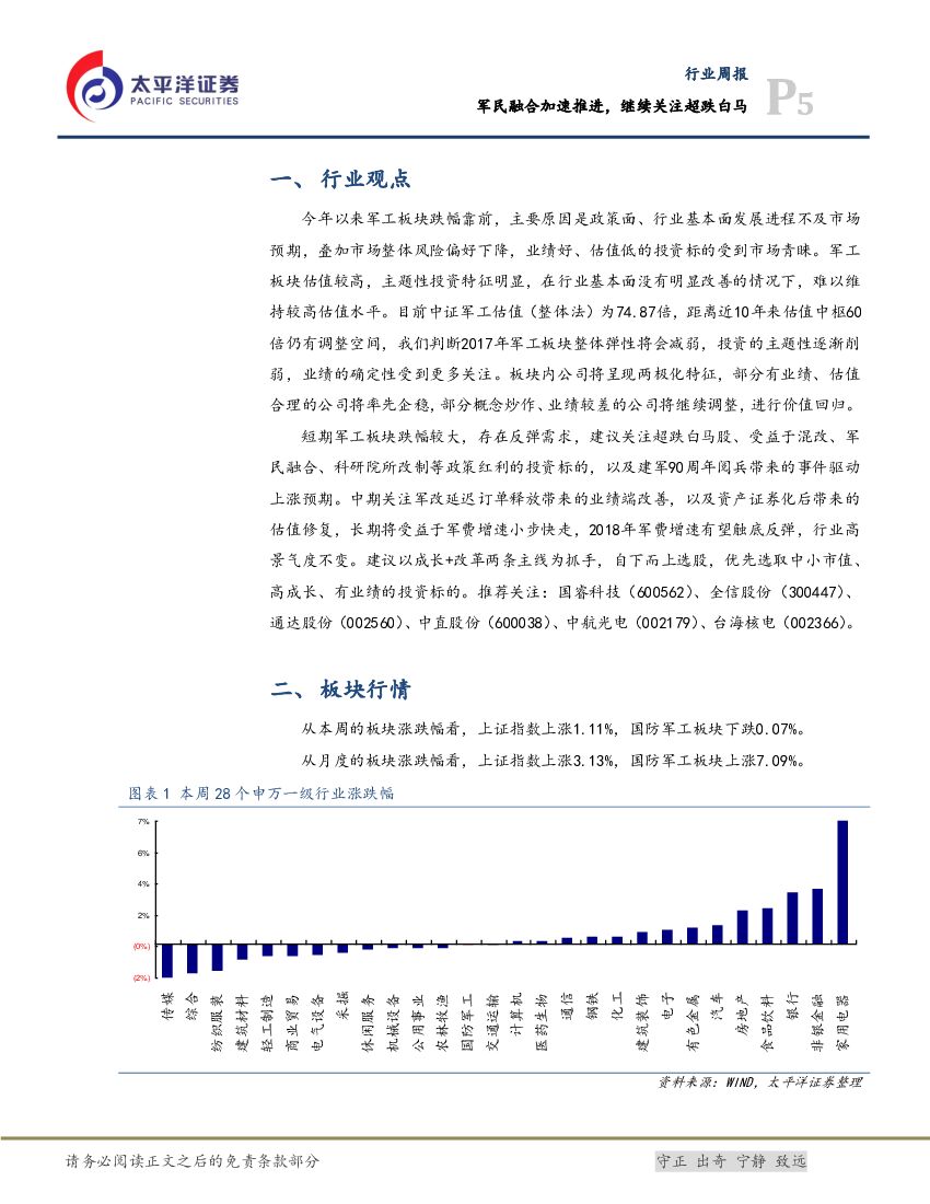 太平洋证券:国防军工行业周报:军民融合加速推进,继续关注超跌白马.pdf