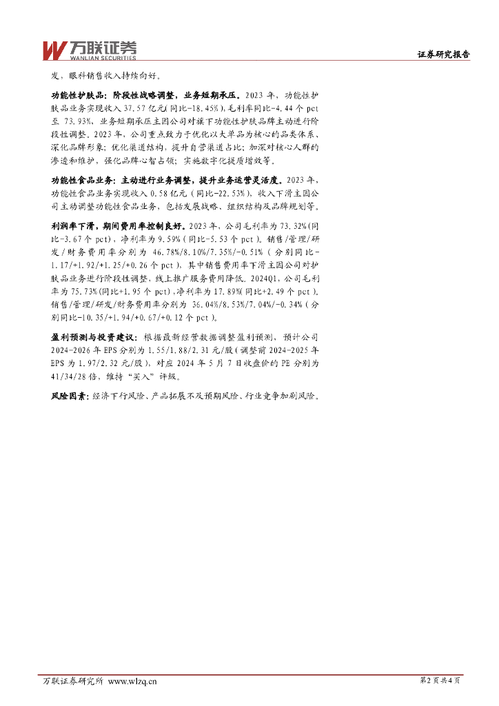 万联证券:华熙生物(688363)-点评报告:23年业务调整,24Q1业绩修复回升.pdf